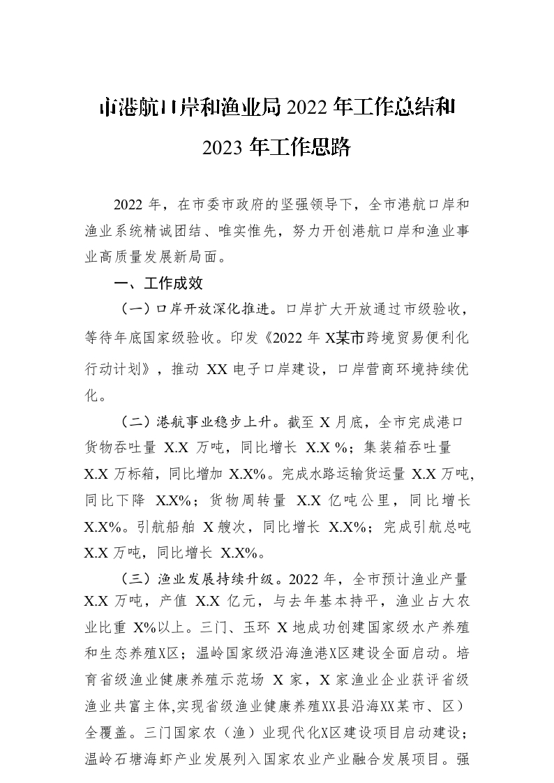 / 市港航口岸和渔业局2022年工作总结和2023年工作思路