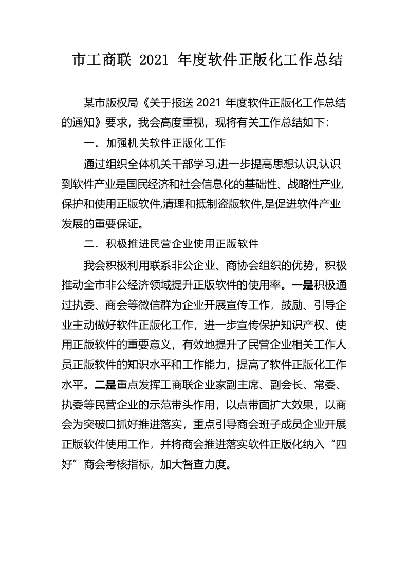 / 市工商联2021年度软件正版化工作总结