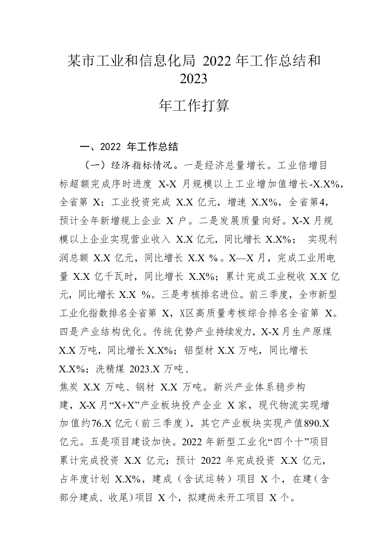 / 市工业和信息化局2022年工作总结和2023年工作打算