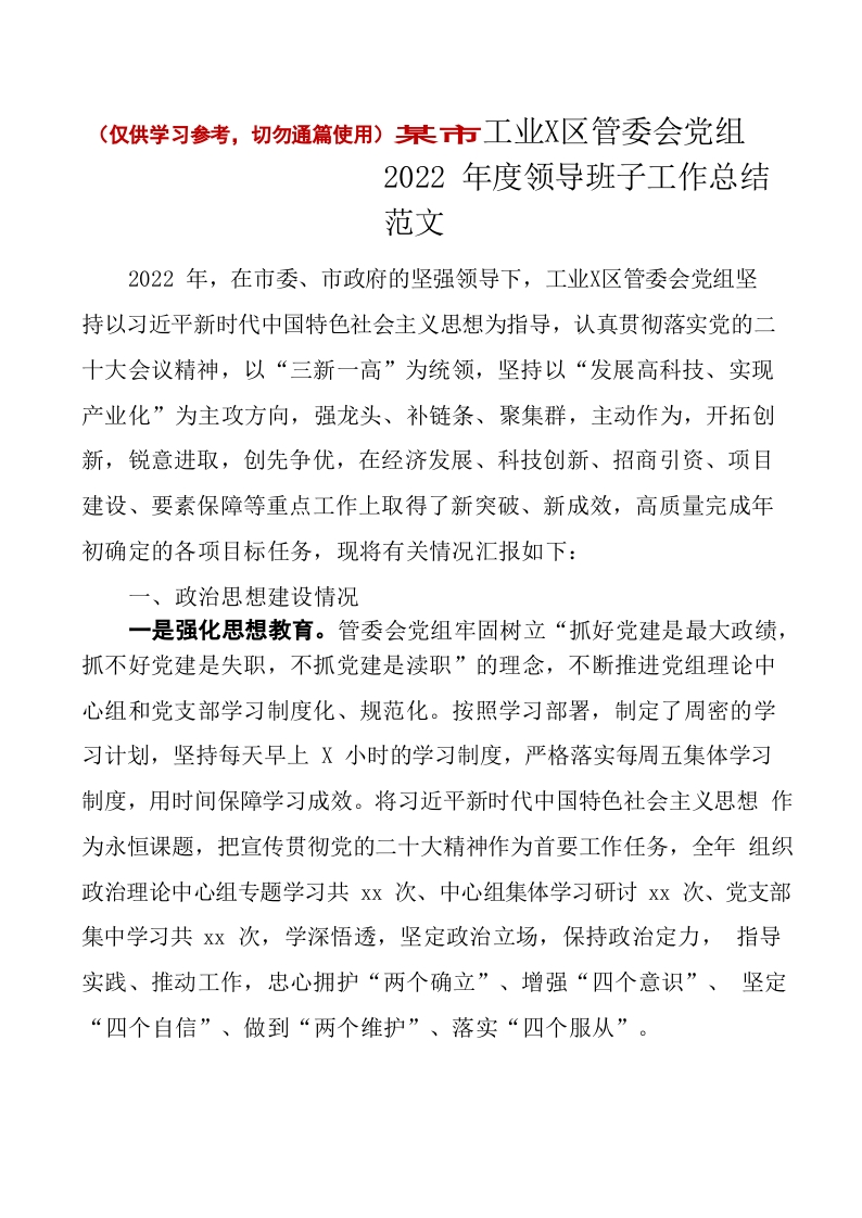 / 市工业园区管委会党组2022年度领导班子工作总结