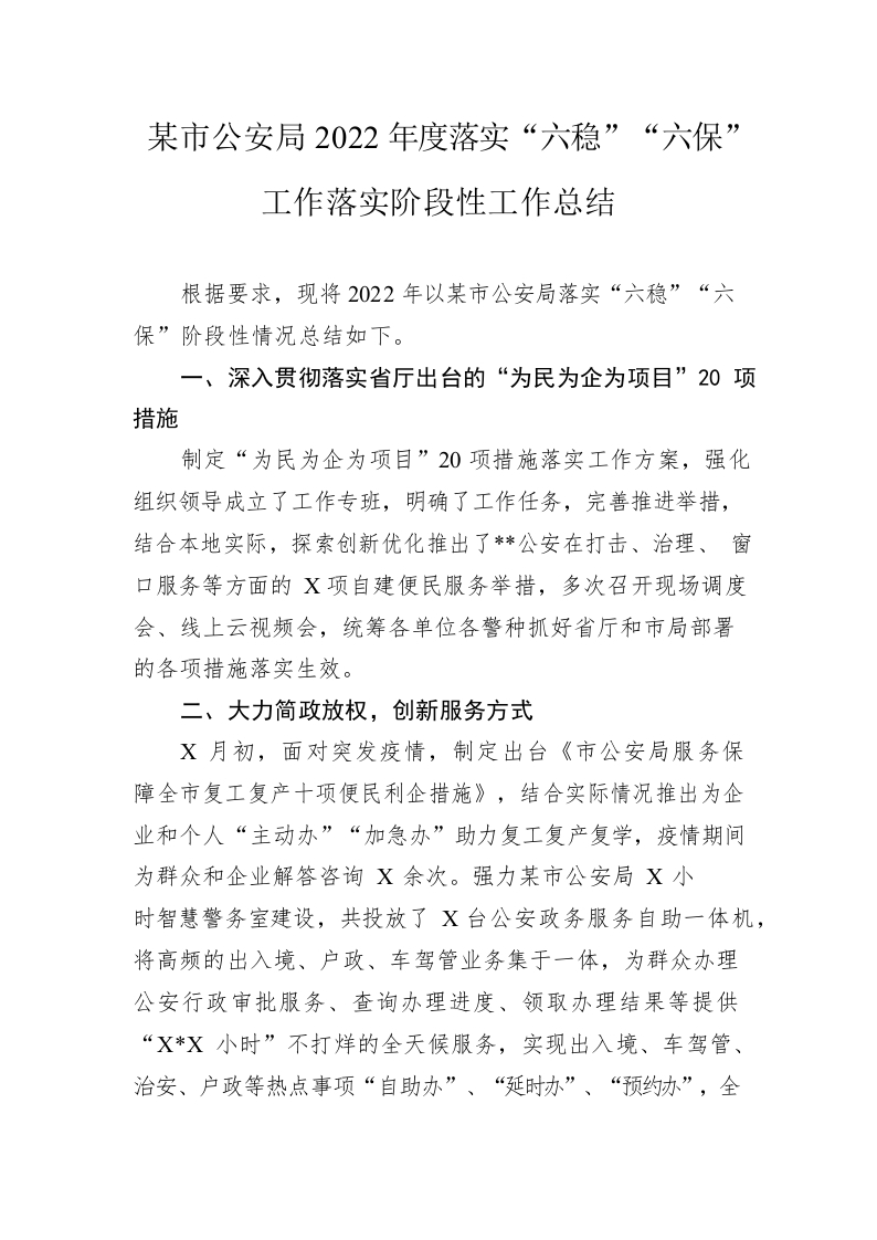 / 市公安局2022年度落实“六稳”“六保”工作落实阶段性工作总结