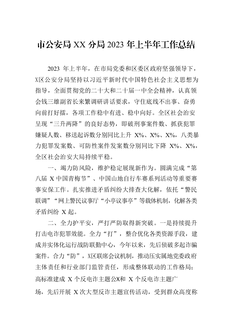 / 市公安局XX分局2023年上半年工作总结(20230706)