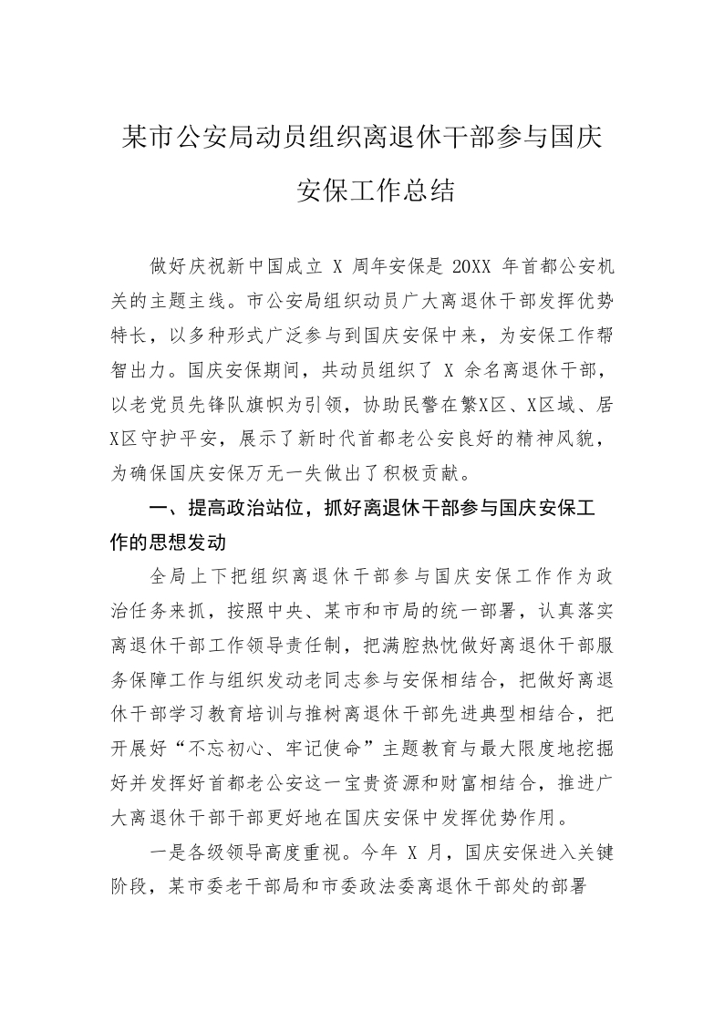 / 市公安局动员组织离退休干部参与国庆安保工作总结