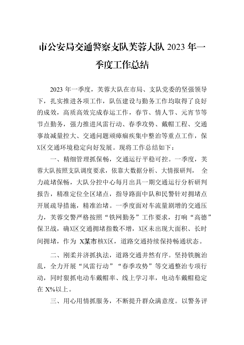 / 市公安局交通警察支队芙蓉大队2023年一季度工作总结(20230331))