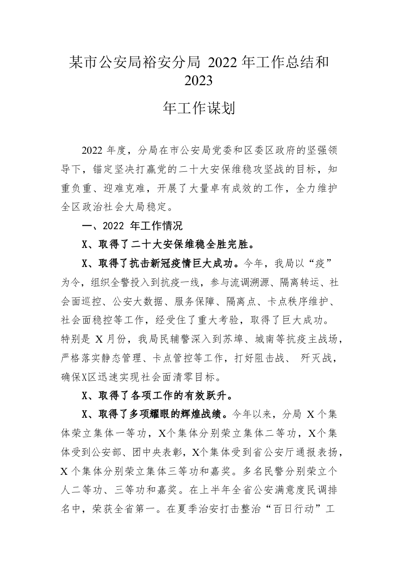 / 市公安局裕安分局2022年工作总结和2023年工作谋划