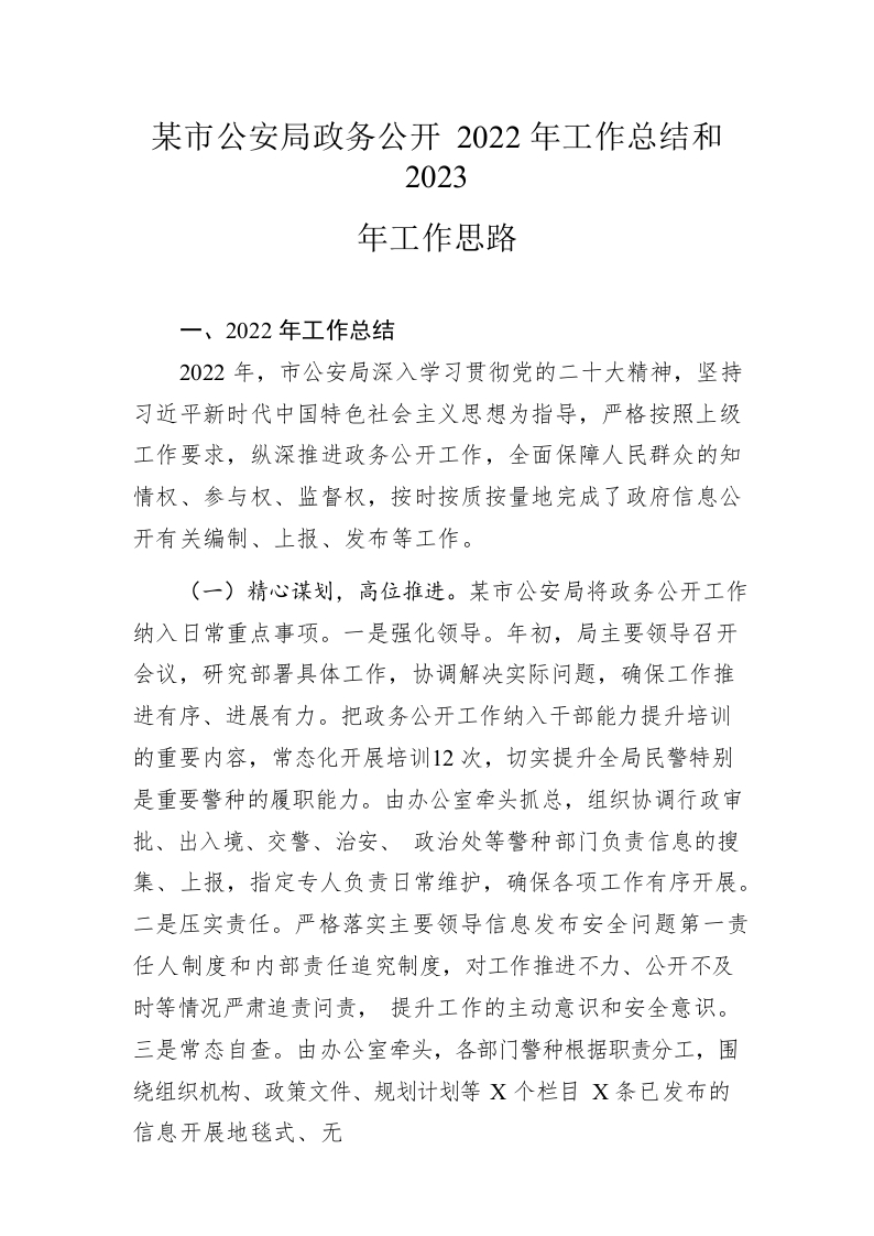 / 市公安局政务公开2022年工作总结和2023年工作思路(20230110)
