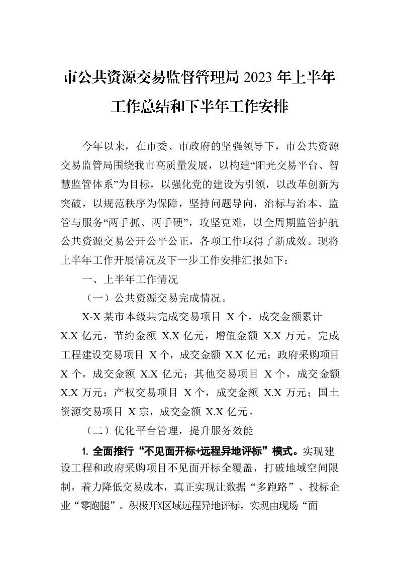 / 市公共资源交易监督管理局2023年上半年工作总结和下半年工作安排(20230703)