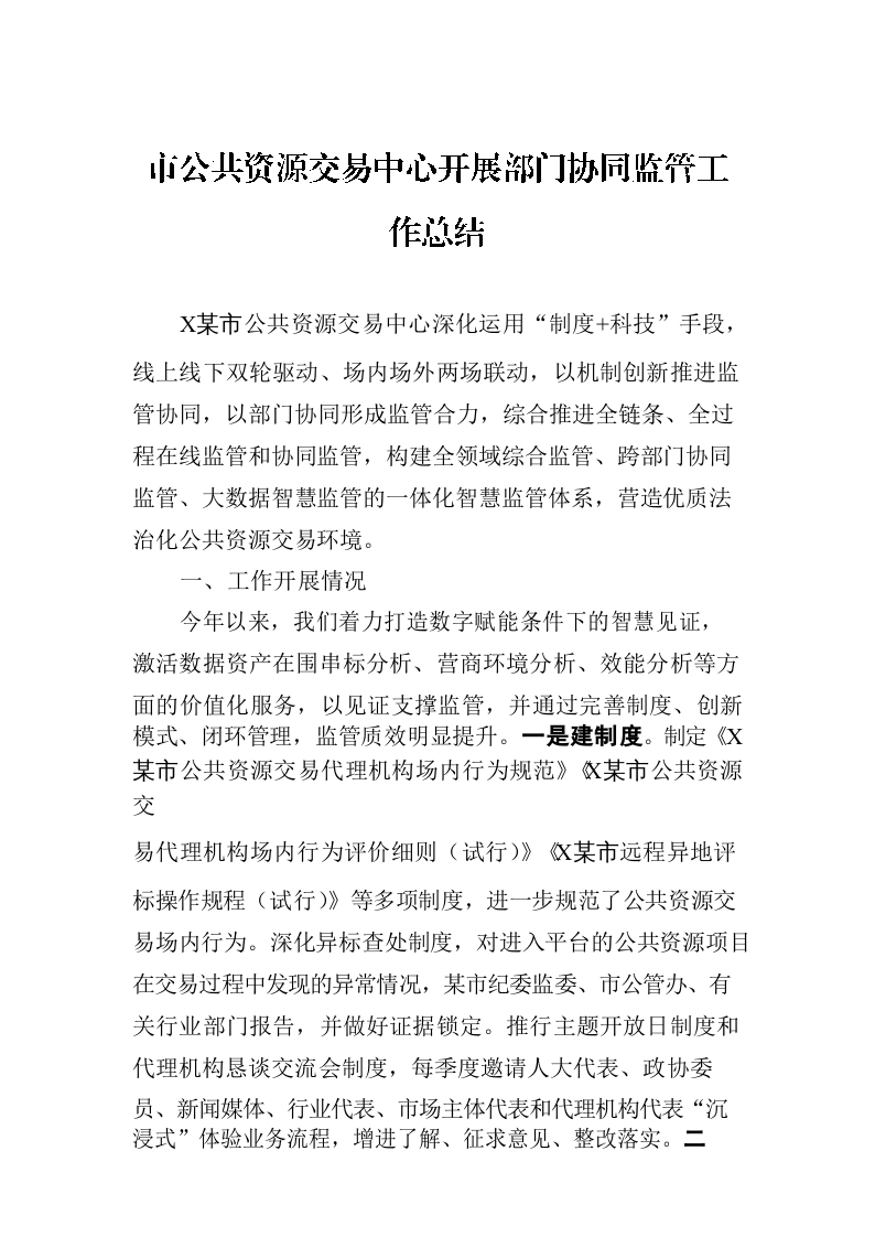 / 市公共资源交易中心开展部门协同监管工作总结