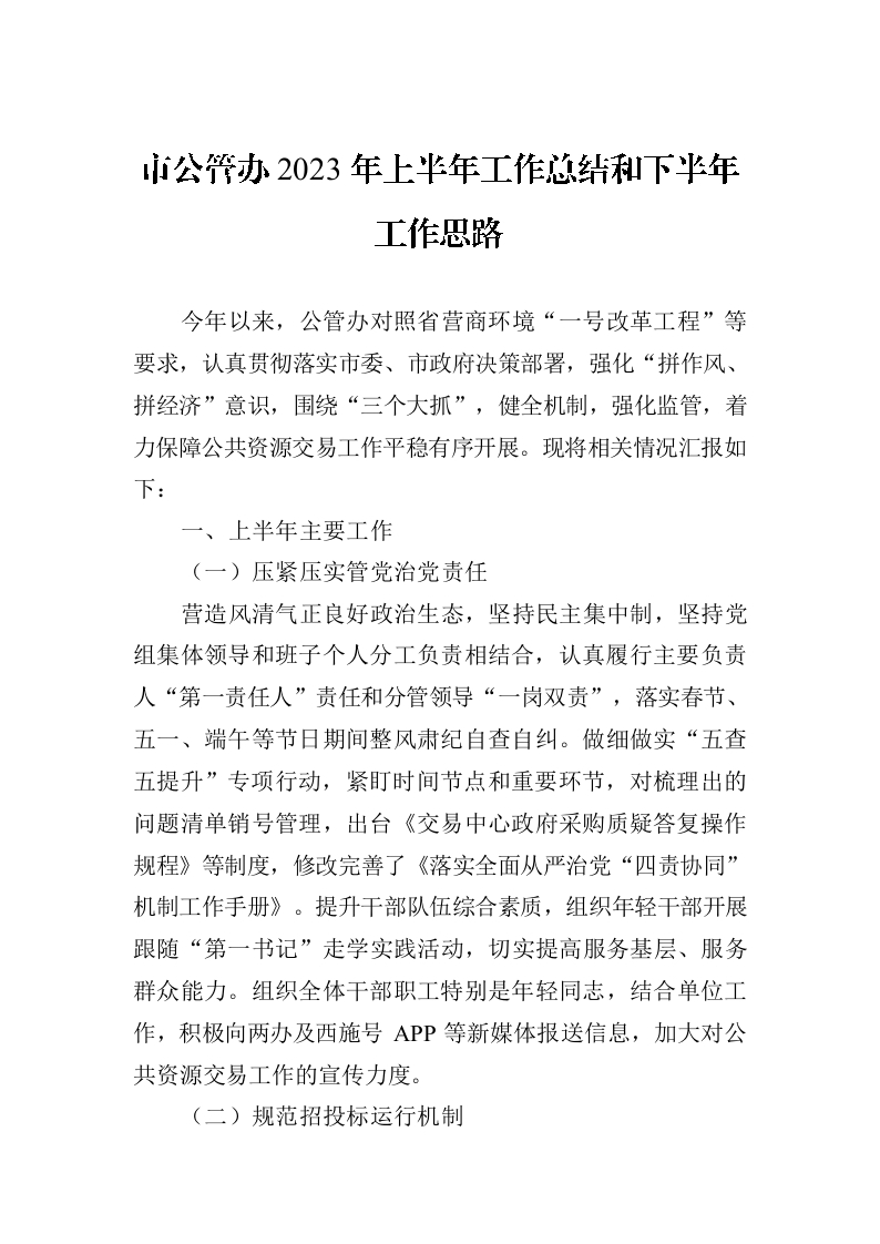 / 市公管办2023年上半年工作总结和下半年工作思路(20230703)
