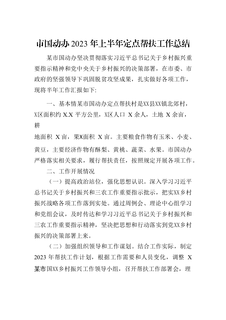 / 市国动办2023年上半年定点帮扶工作总结(20230630)
