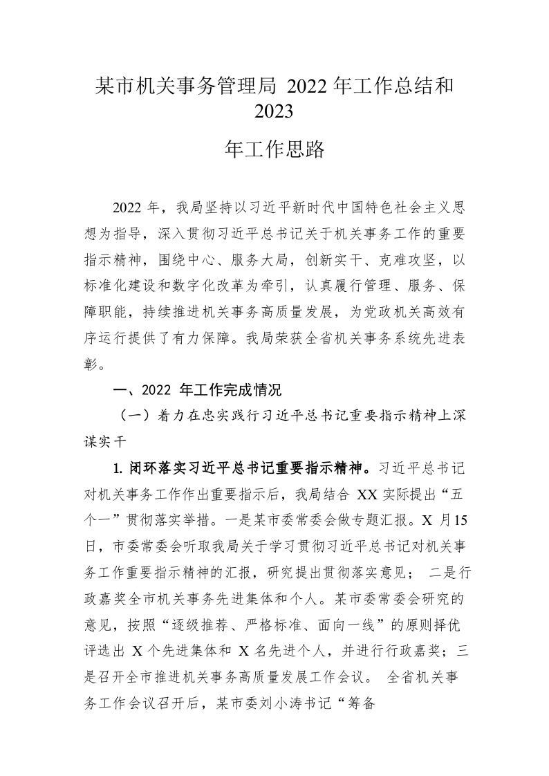 / 市机关事务管理局2022年工作总结和2023年工作思路