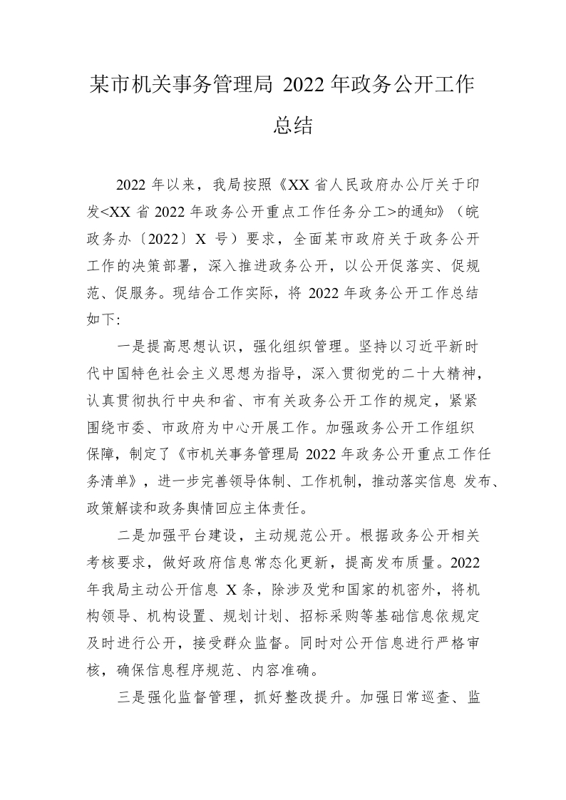 / 市机关事务管理局2022年政务公开工作总结(20221220)