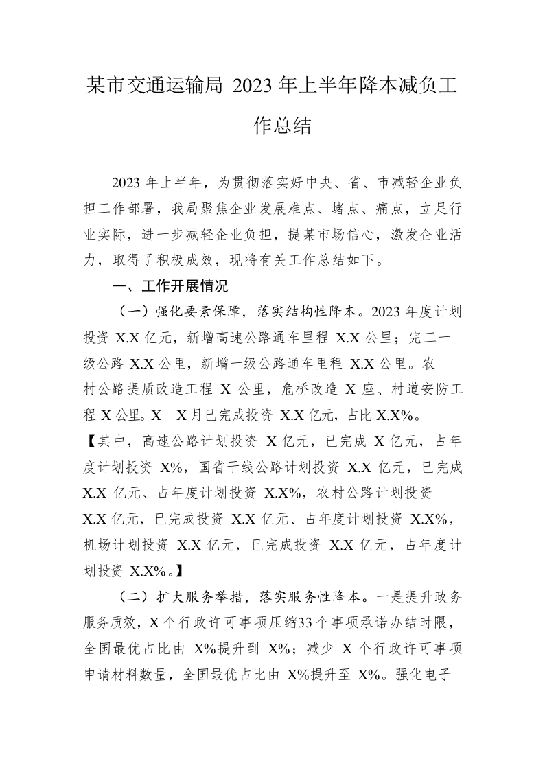 / 市交通运输局2023年上半年降本减负工作总结(20230627)