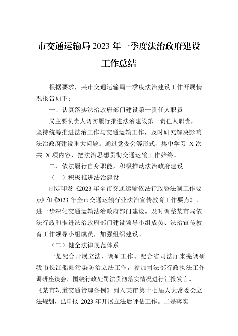 / 市交通运输局2023年一季度法治政府建设工作总结(20230330)