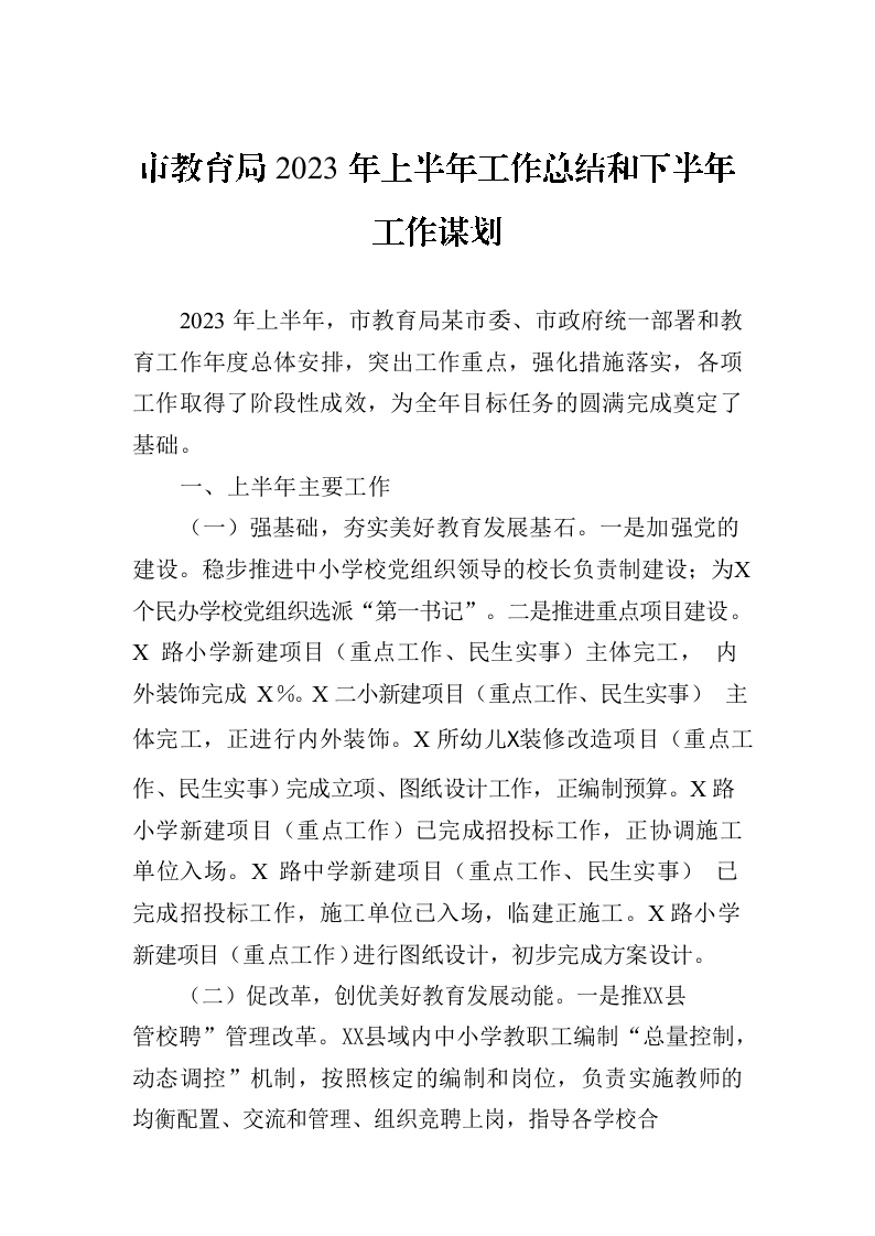 / 市教育局2023年上半年工作总结和下半年工作谋划
