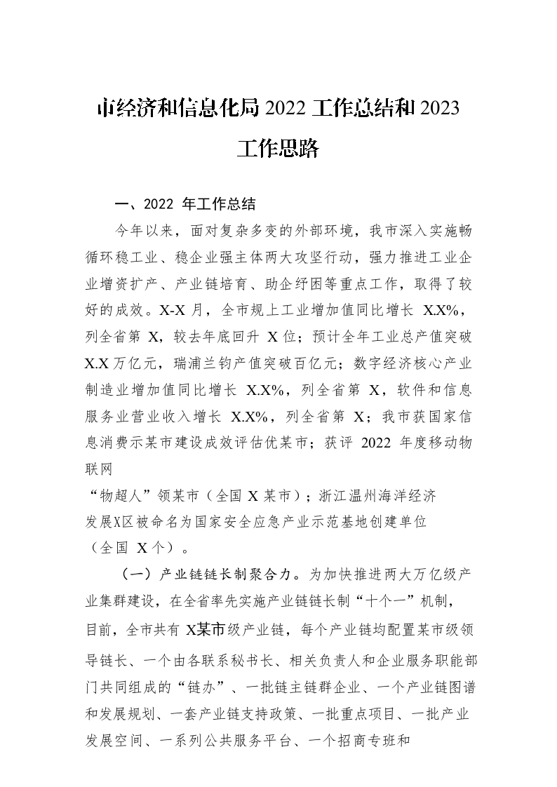 / 市经济和信息化局2022工作总结和2023工作思路