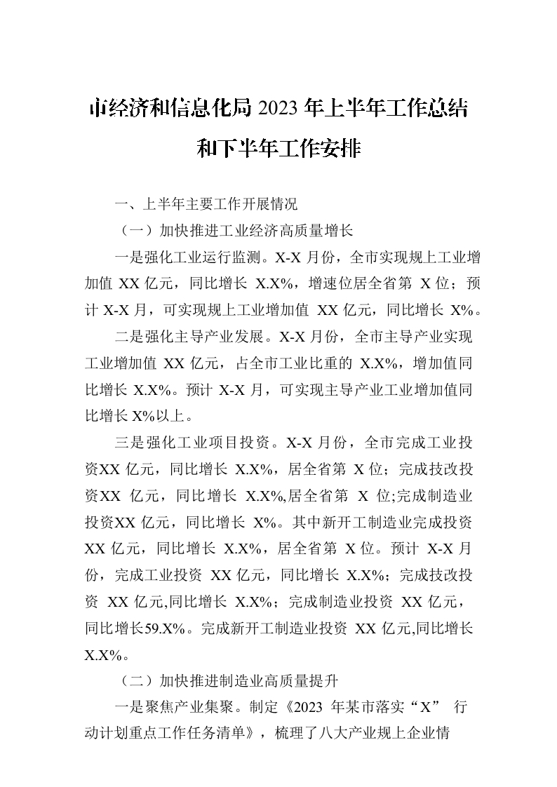 / 市经济和信息化局2023年上半年工作总结和下半年工作安排