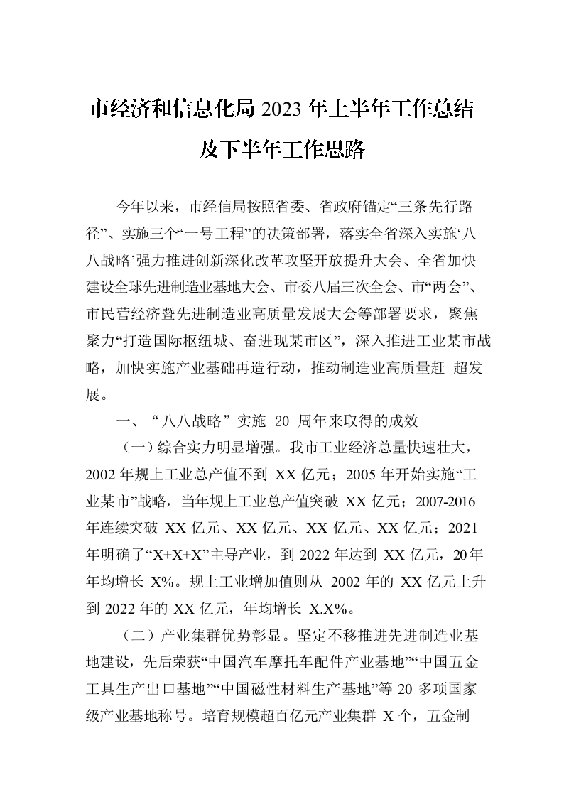 / 市经济和信息化局2023年上半年工作总结及下半年工作思路