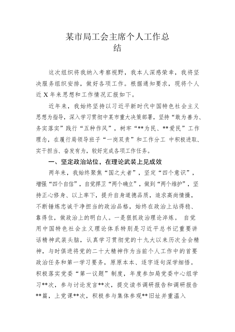 市局工会主席个人工作总结