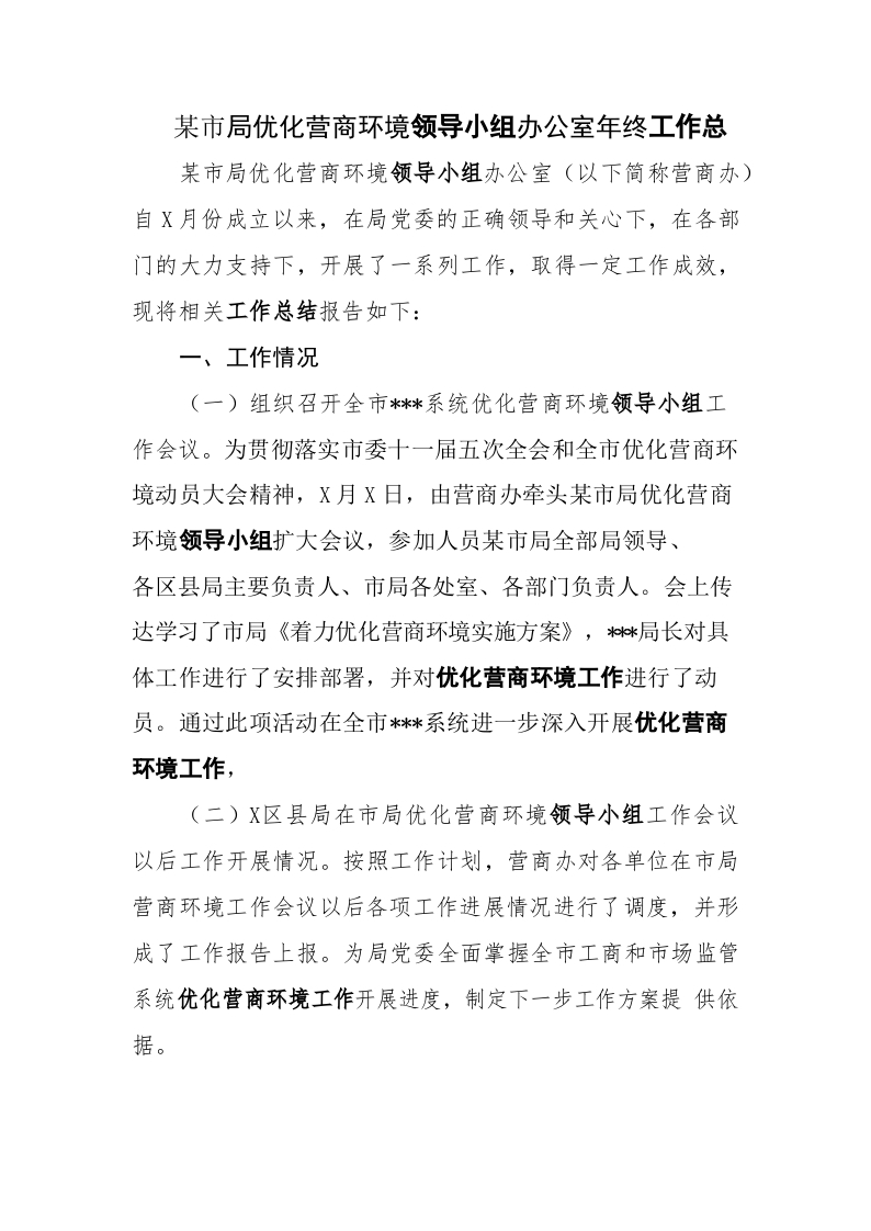/ 市局优化营商环境领导小组办公室年终工作总结