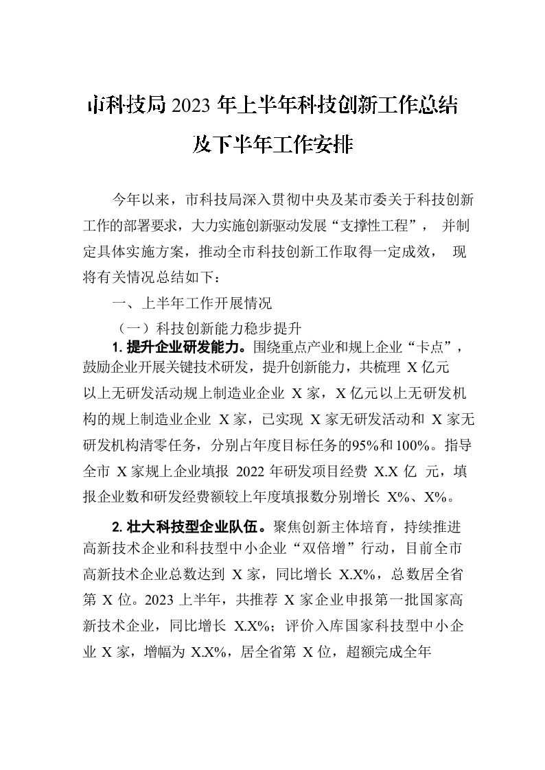 / 市科技局2023年上半年科技创新工作总结及下半年工作安排(20230703)