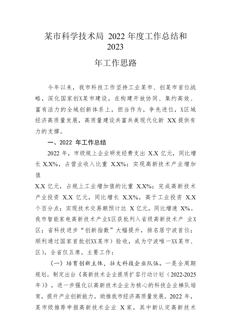 / 市科学技术局2022年度工作总结和2023年工作思路