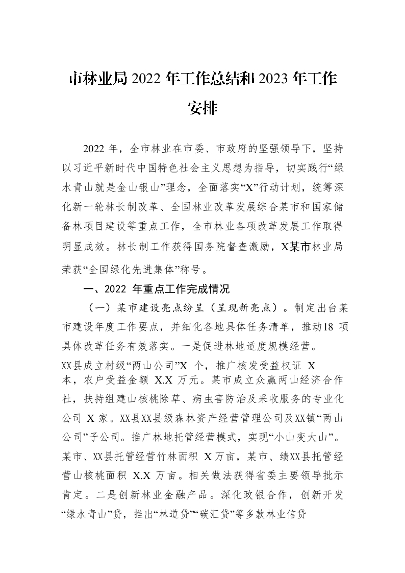 市林业局2023年上半年工作总结及下半年工作打算(20230703)