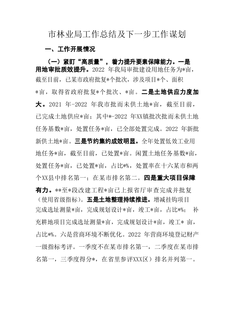 / 市林业局工作总结及下一步工作谋划