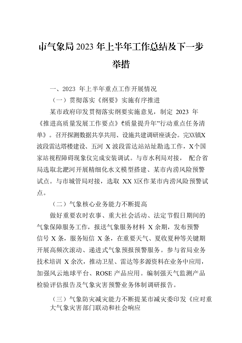 / 市气象局2023年上半年工作总结及下一步举措(20230705)