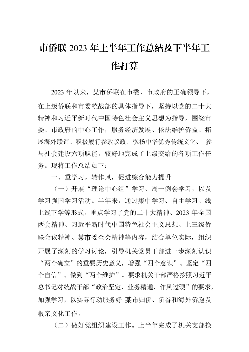 / 市侨联2023年上半年工作总结及下半年工作打算