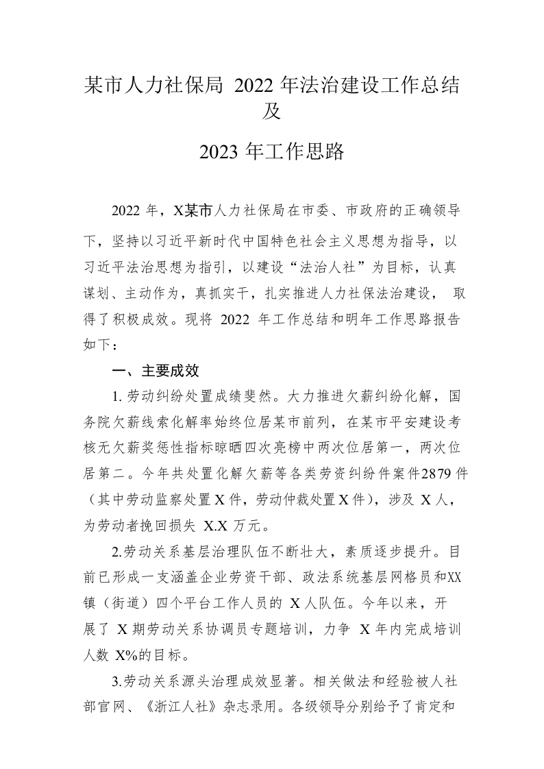 / 市人力社保局2022年法治建设工作总结及2023年工作思路
