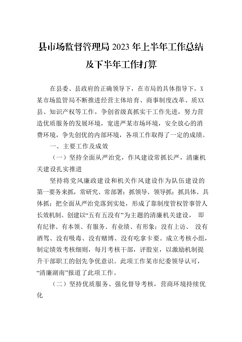/ 县市场监督管理局2023年上半年工作总结及下半年工作打算