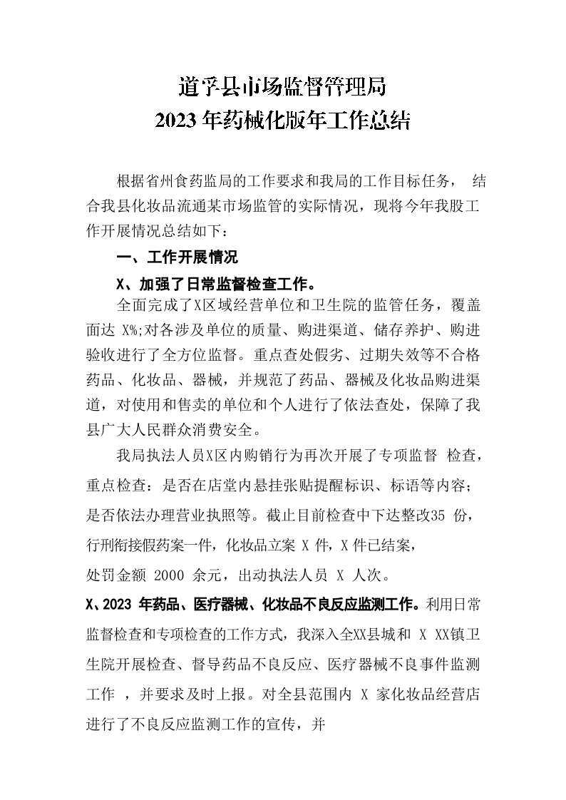 / 县市场监督管理局2023年药械化版年工作总结.2023