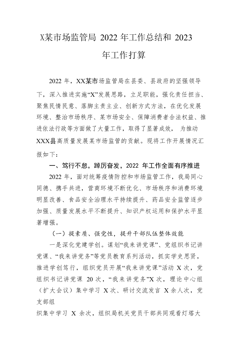 / 县市场监管局2022年工作总结和2023年工作打算