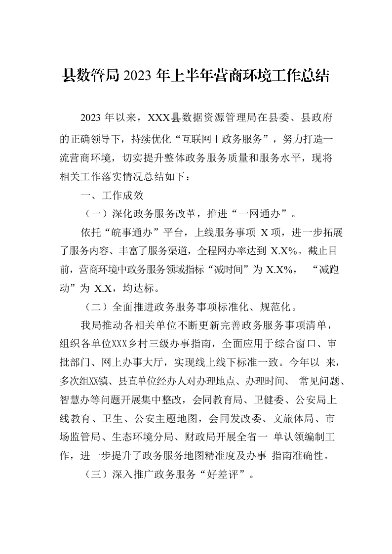 / 县数管局2023年上半年营商环境工作总结(20230601)