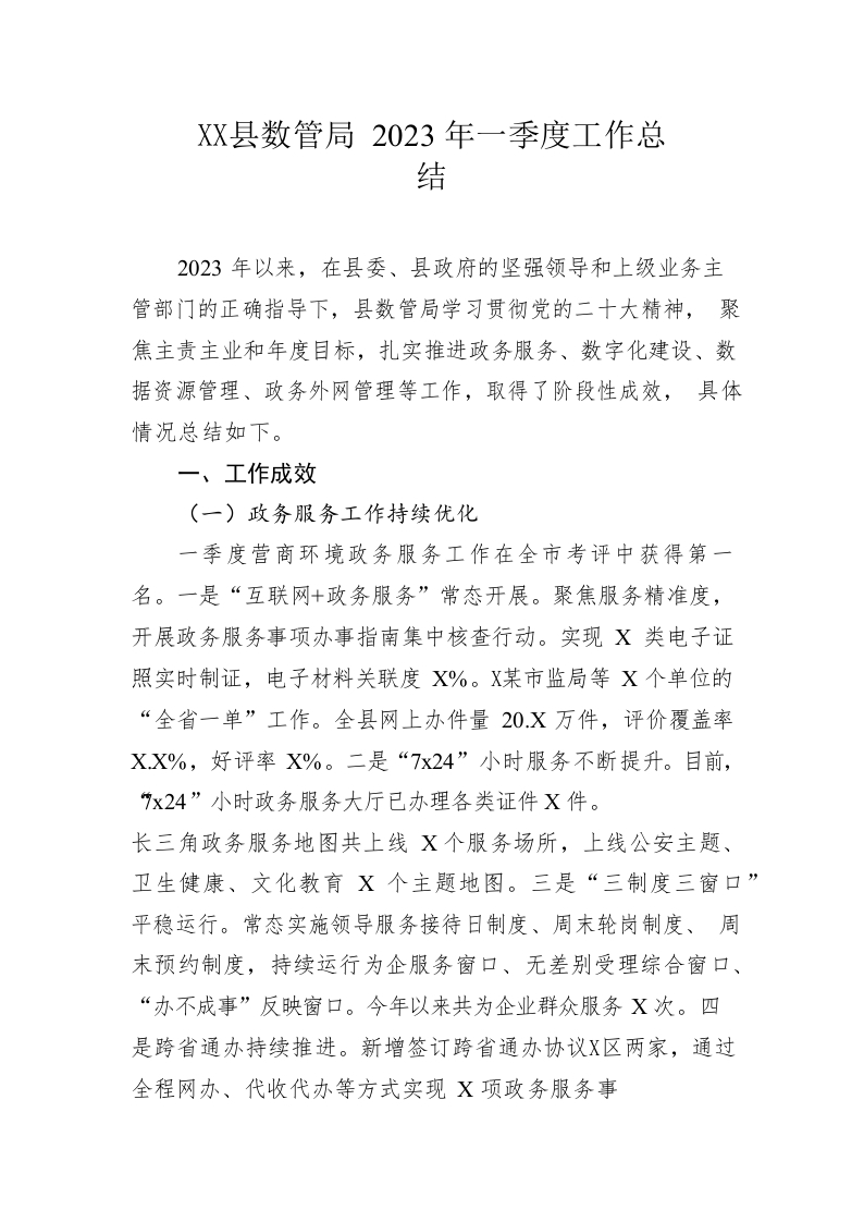 / 县数管局2023年一季度工作总结(20230515)