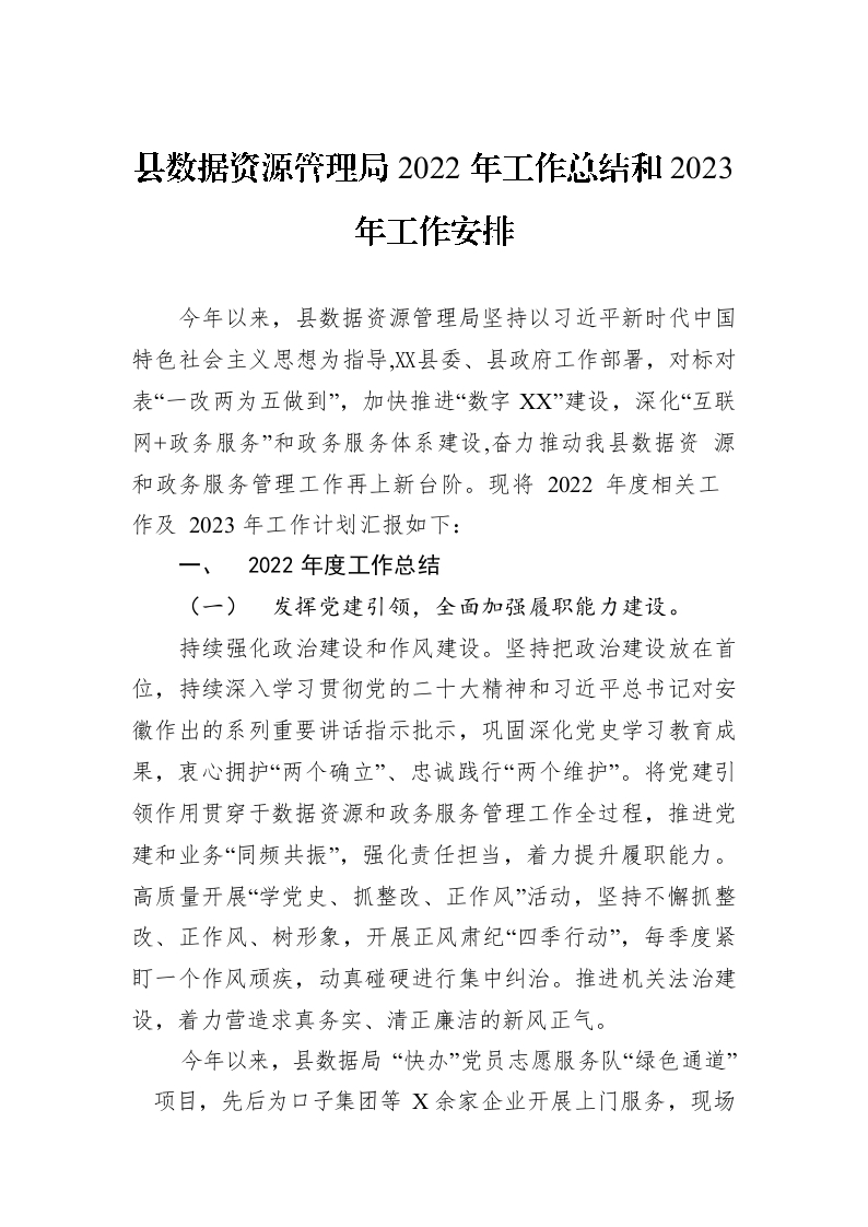 / 县数据资源管理局2022年工作总结和2023年工作安排