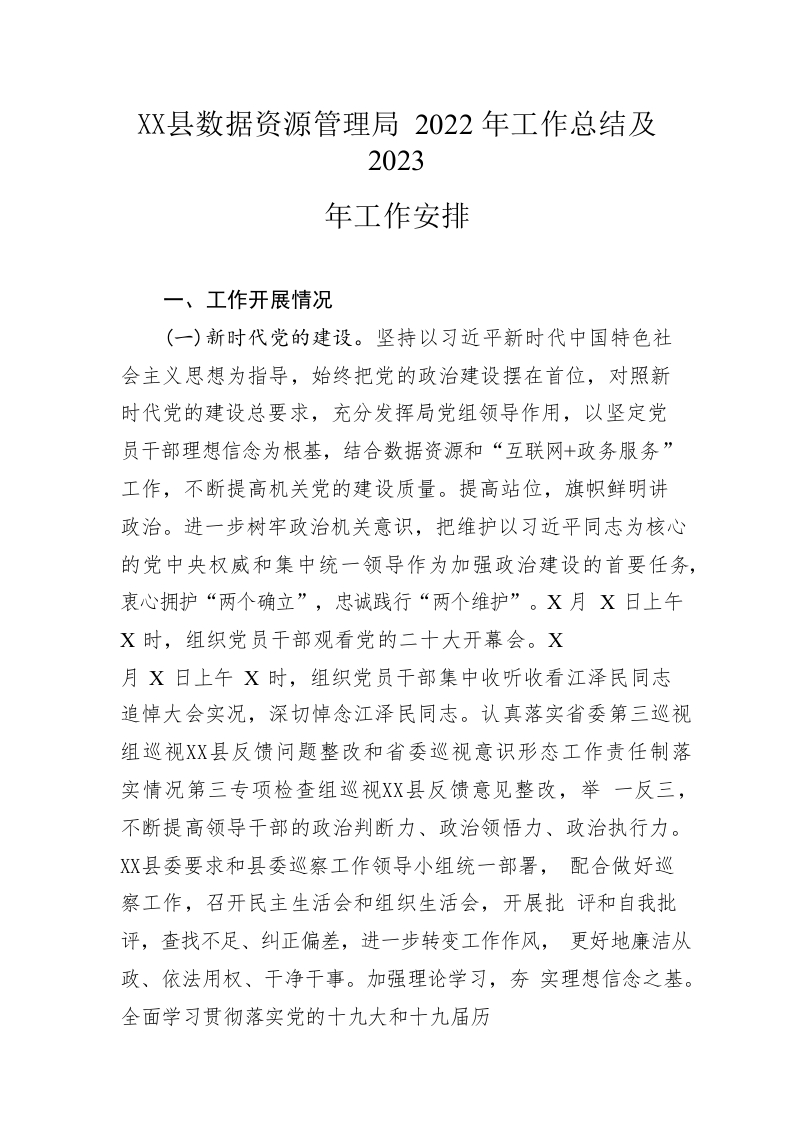 / 县数据资源管理局2022年工作总结及2023年工作安排