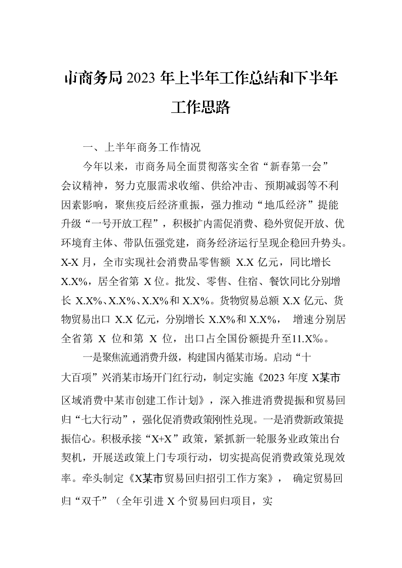 / 市商务局2023年上半年工作总结和下半年工作思路(2020707)