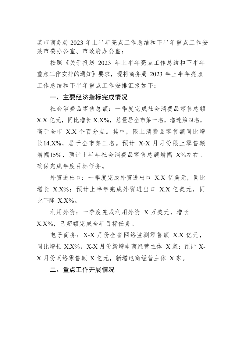 / 市商务局2023年上半年亮点工作总结和下半年重点工作安排(20230616)