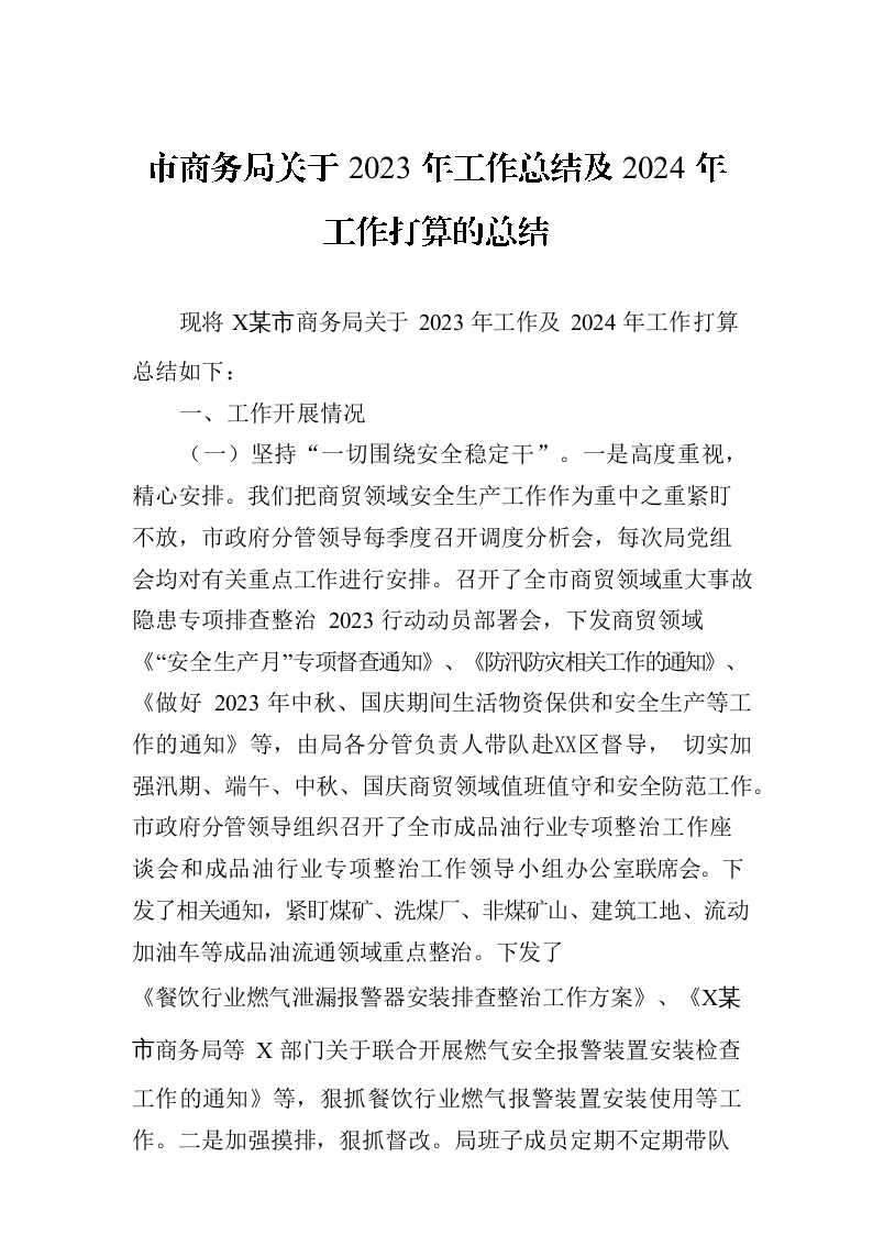 / 市商务局关于2023年工作总结及2024年工作打算的总结(20231031)