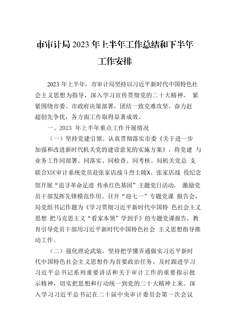 市审计局2023年上半年工作总结和下半年工作安排(20231101)