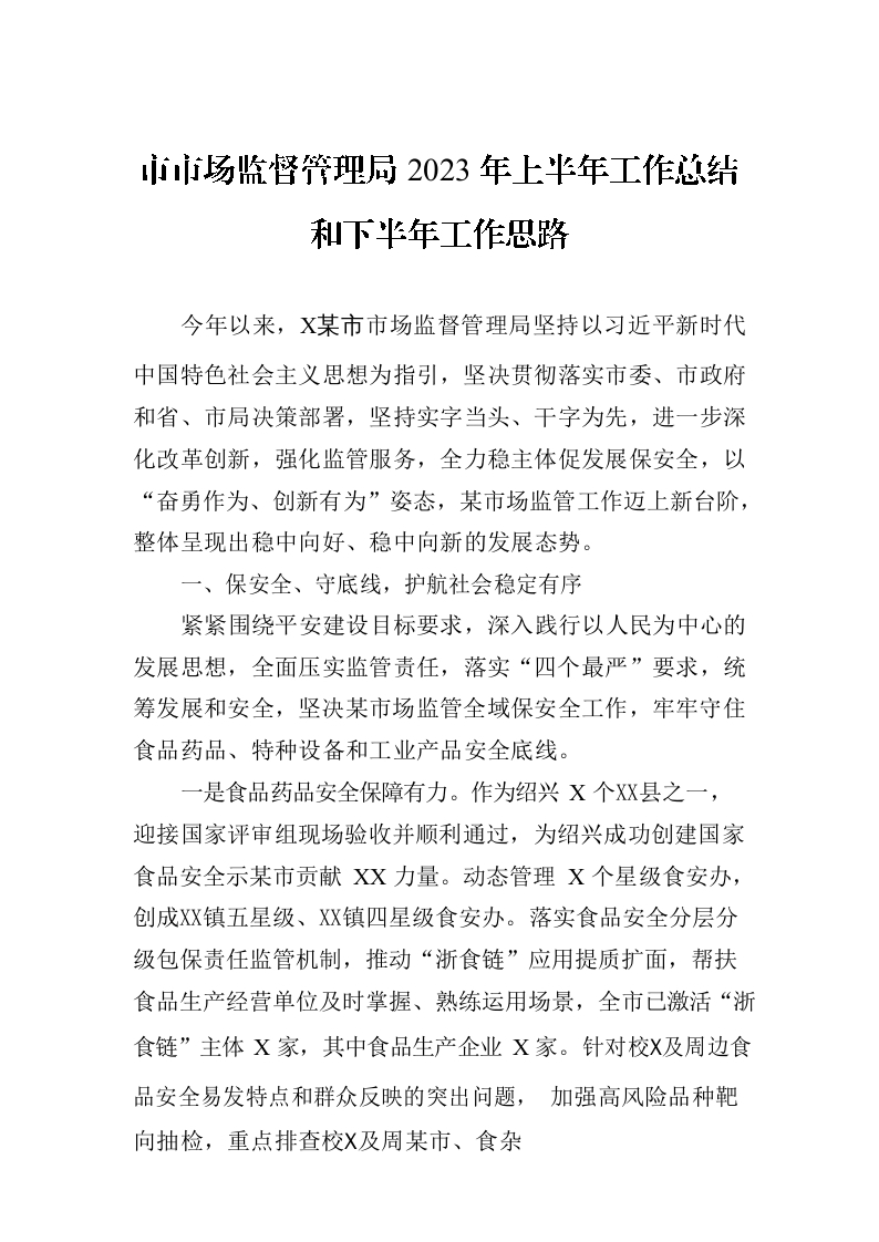 / 市市场监督管理局2023年上半年工作总结和下半年工作思路
