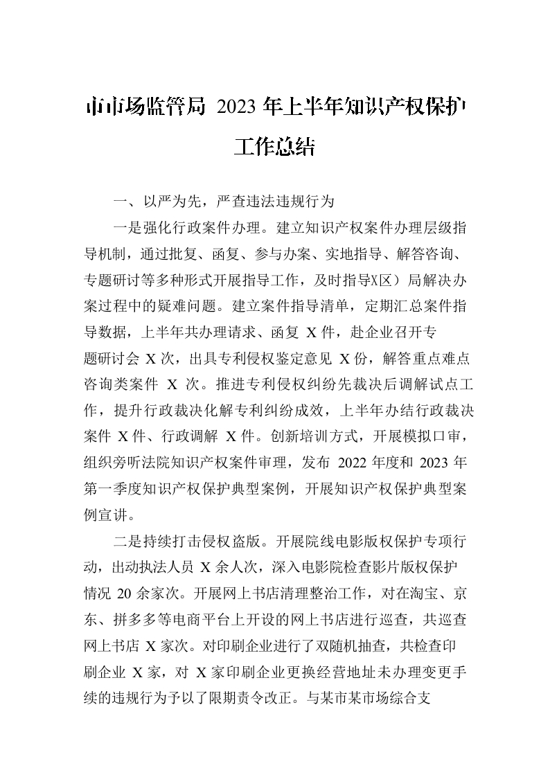 / 市市场监管局 2023年上半年知识产权保护工作总结(20230703)