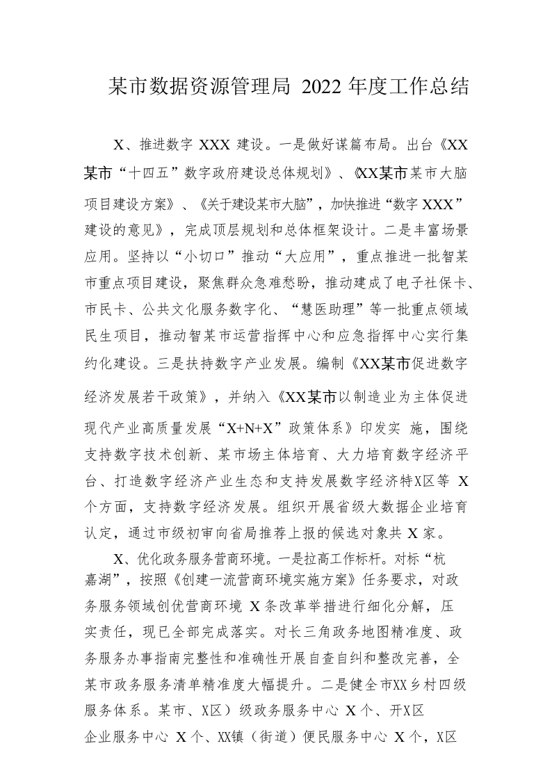 / 市数据资源管理局2022年度工作总结(20221122)