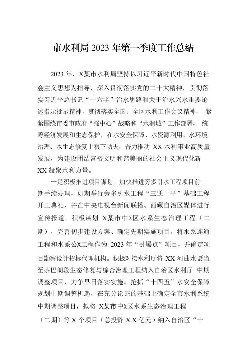 / 市水利局2023年第一季度工作总结 (20230404)