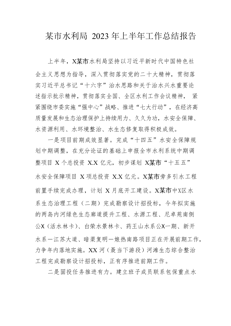 / 市水利局2023年上半年工作总结报告(20230612)