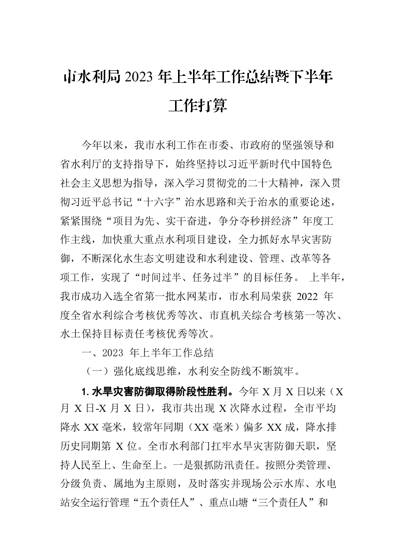 / 市水利局2023年上半年工作总结暨下半年工作打算