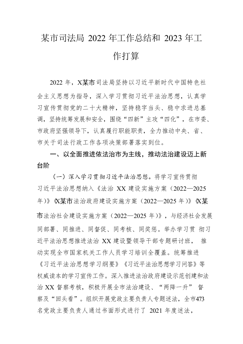 / 市司法局2022年工作总结和2023年工作打算