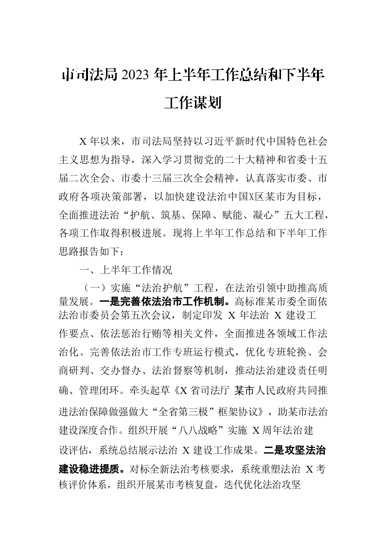 / 市司法局2023年上半年工作总结和下半年工作谋划
